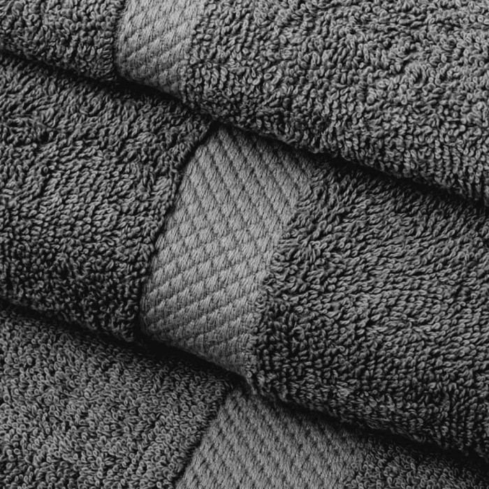 Toalla de baño color gris oscuro confeccionada 100% en algodón peinado de alta calidad de 550gr. El tejido sorprende por su suavidad y absorción, por lo que será una delicia envolverse en la toalla después de un baño o de una ducha.