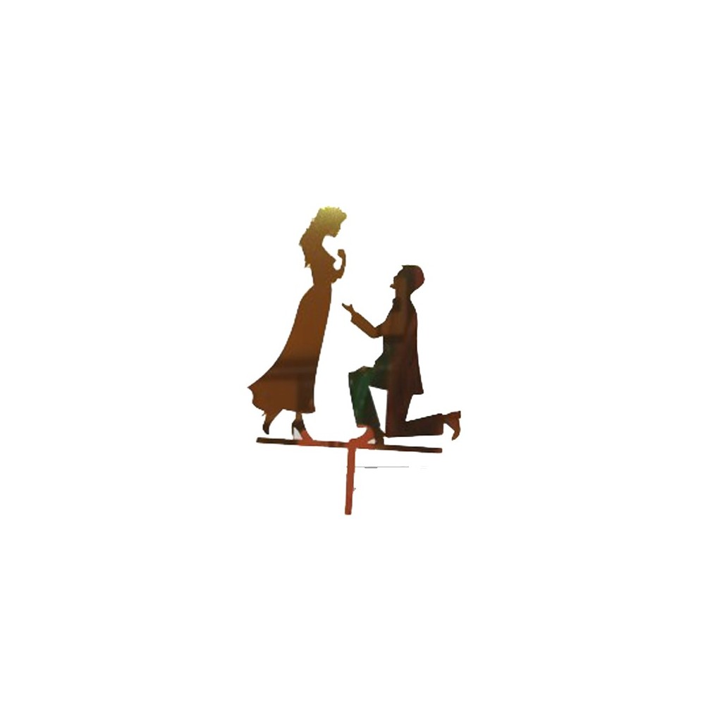 Para decorar una tarta de boda y darle un acabado especial utiliza este fantástico cake topper en color oro con un bonito y elegante diseño formado por la silueta de un novio arrodillado pidiendo la mano a su pareja, conseguirás impresionar a los invitados y harás que la tarta luzca mágica en un día tan especial.