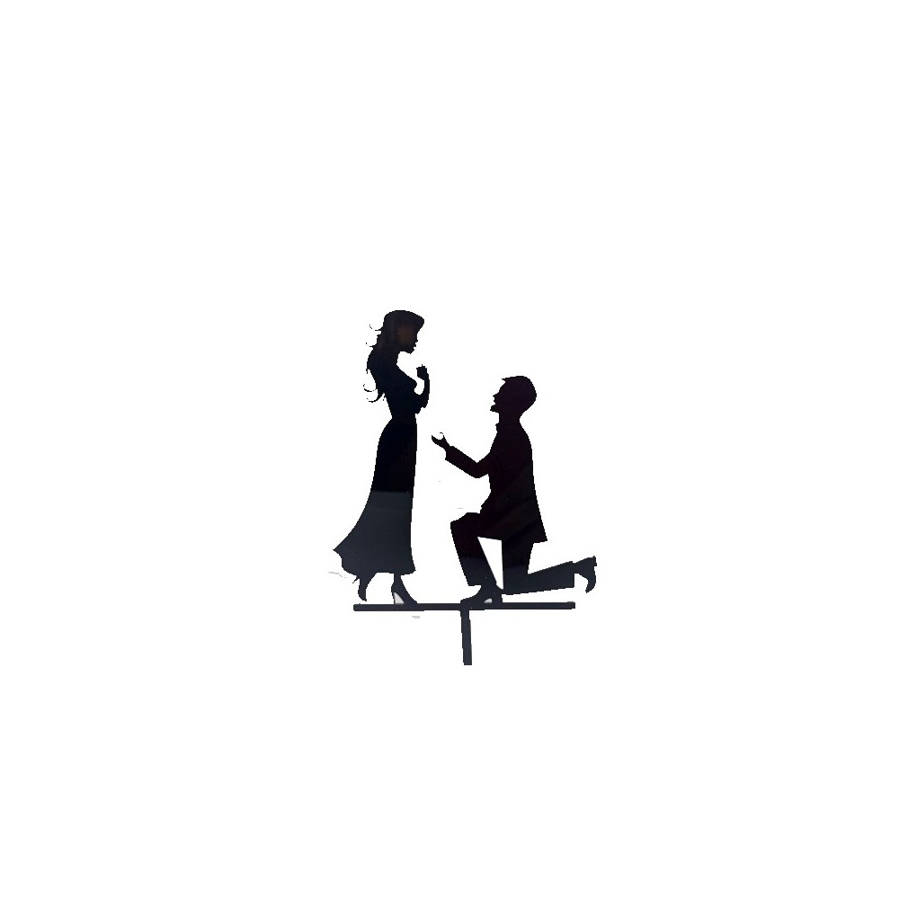 Para decorar una tarta de boda y darle un acabado especial utiliza este fantástico cake topper en color negro con un bonito y elegante diseño formado por la silueta de un novio arrodillado pidiendo la mano a su pareja, conseguirás impresionar a los invitados y harás que la tarta luzca mágica en un día tan especial.