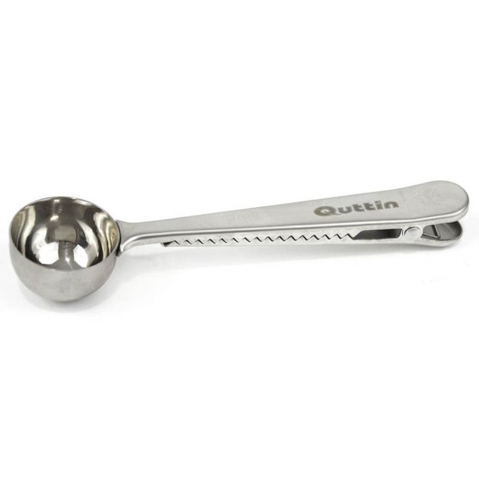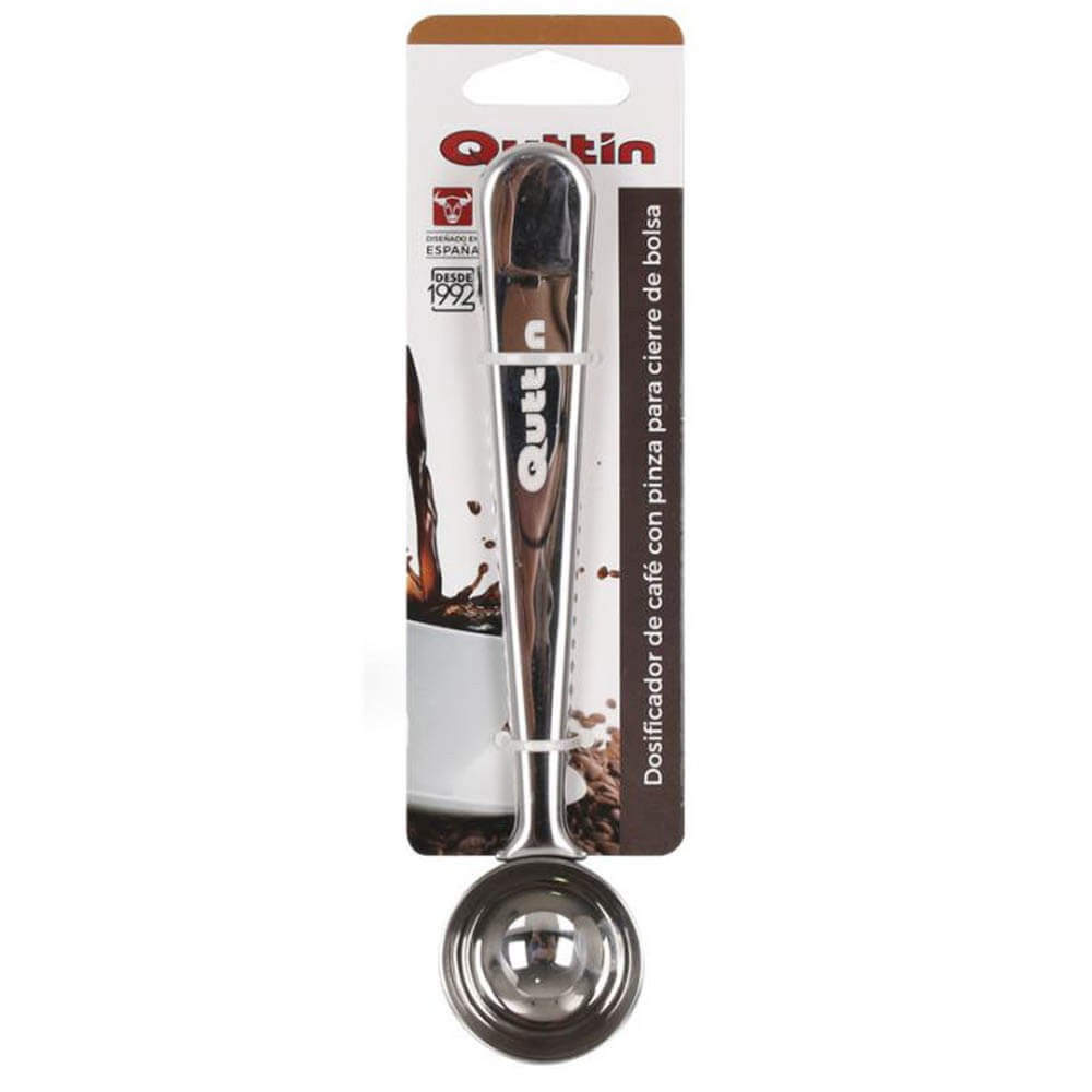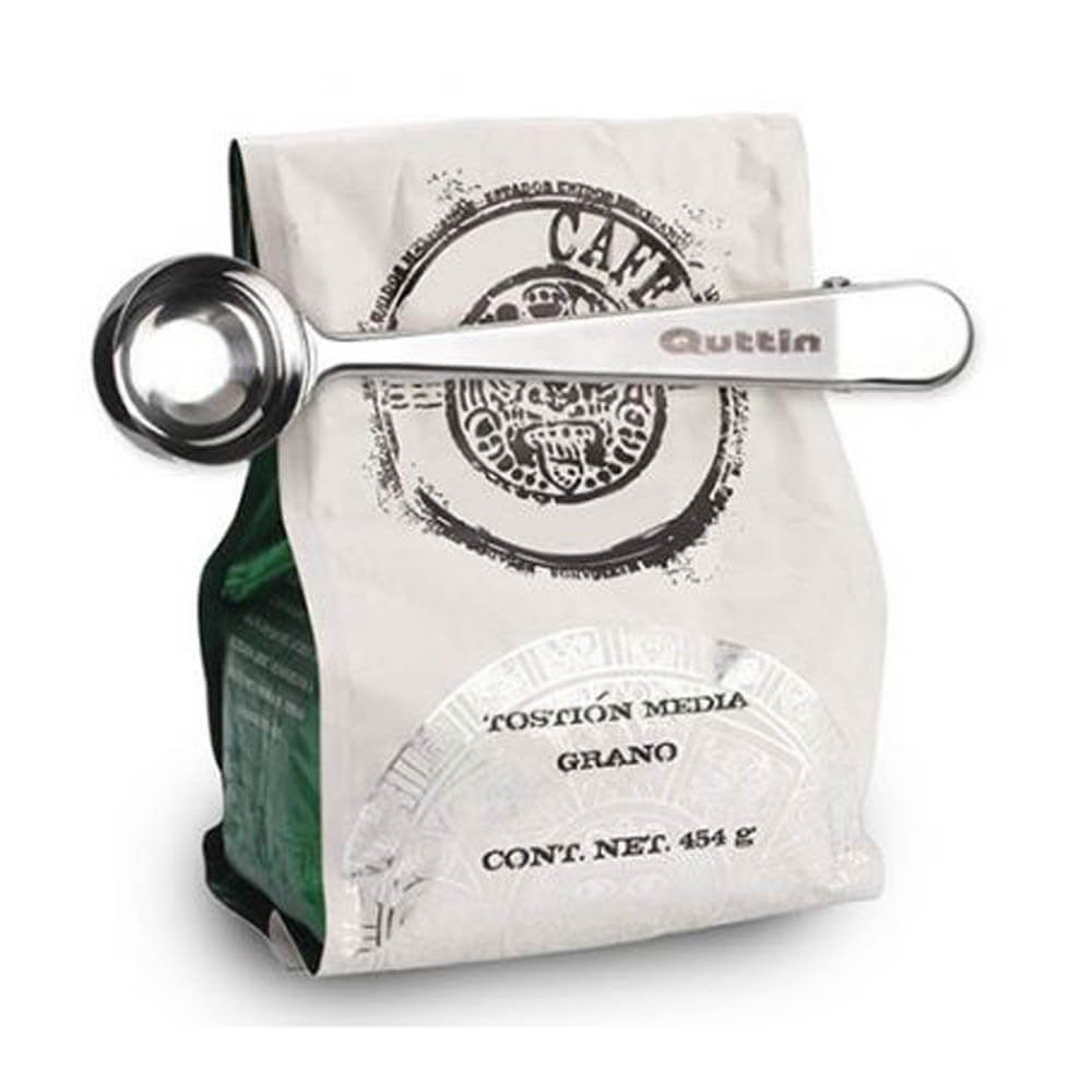 Cuchara para dosificar café con pinza para cerrar la bolsa.