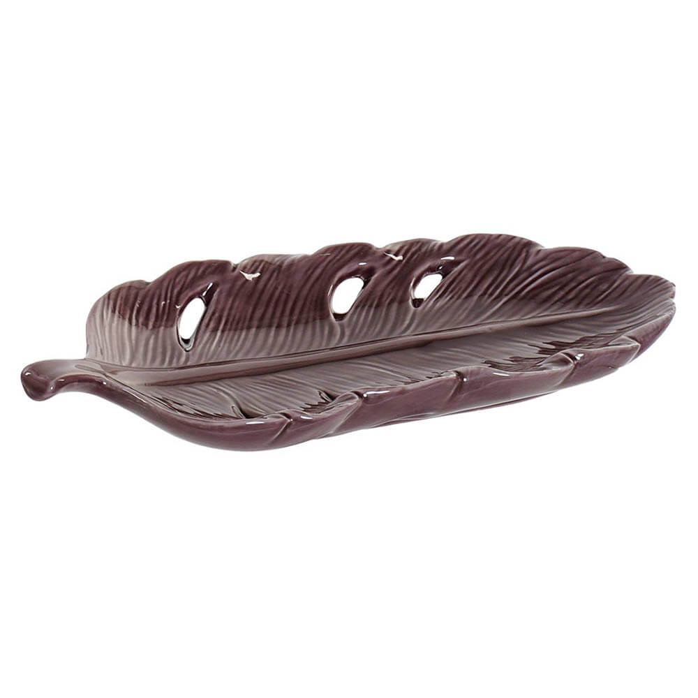 Vaciabolsillos de porcelana en color lila o beige con forma de hoja alargada.