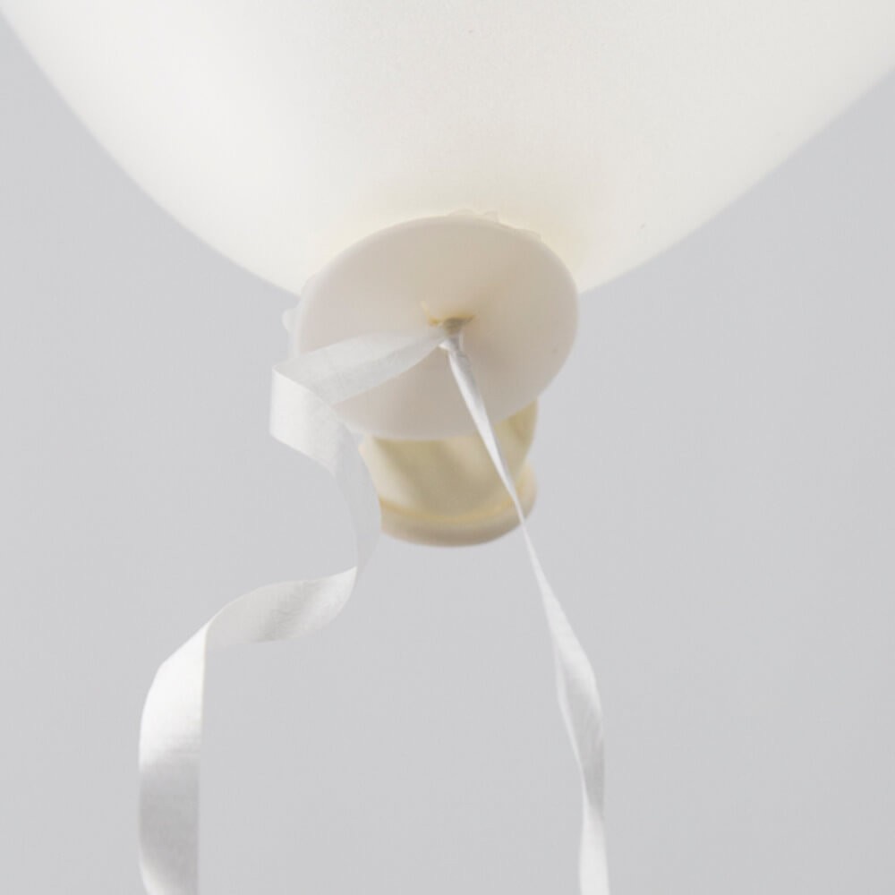 Bolsa con 100 cierres para globos de color blanco con lazo de atado incluido. Estos cierres son aptos para globos de látex, permiten sellar de forma rápida y sencilla los globos sin necesidad de realizar nudos.