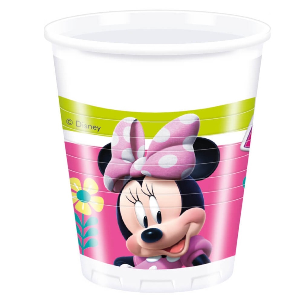 Vasos de plástico Minnie Mouse de 220ml, perfectos para fiestas y celebraciones infantiles.