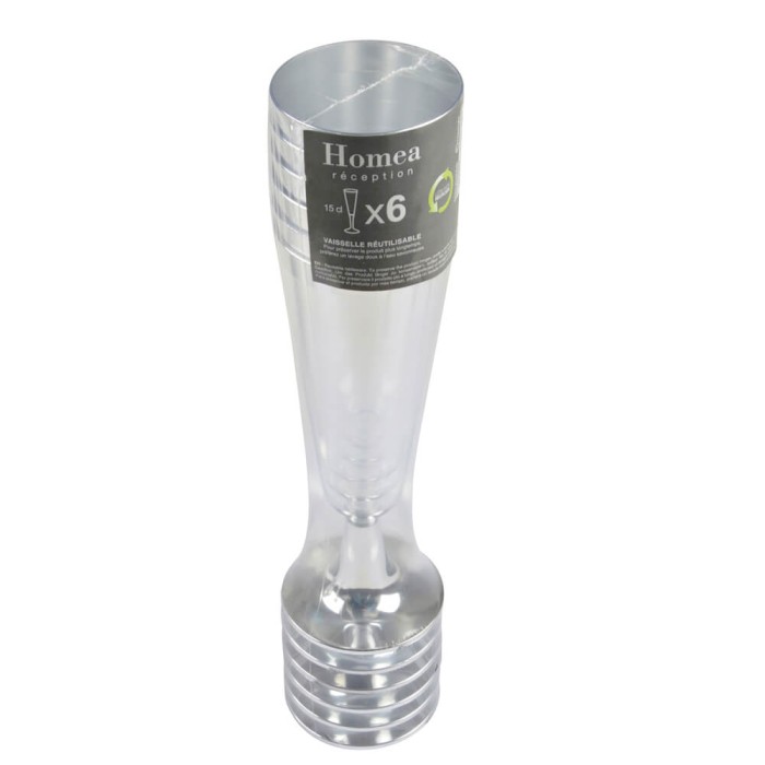 Pack con 6 copas de plástico reutilizable, la forma de flauta es perfecta para servir champan.