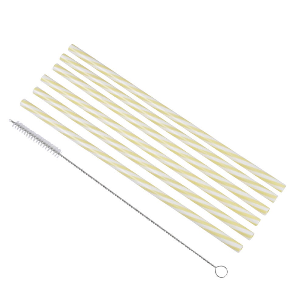 Juego de 6 pajitas reutilizables de color amarillo y blanco fabricadas en plástico resistente, perfectas para beber y degustar todo tipo de bebidas, cocteles, refrescos, batidos, etc.