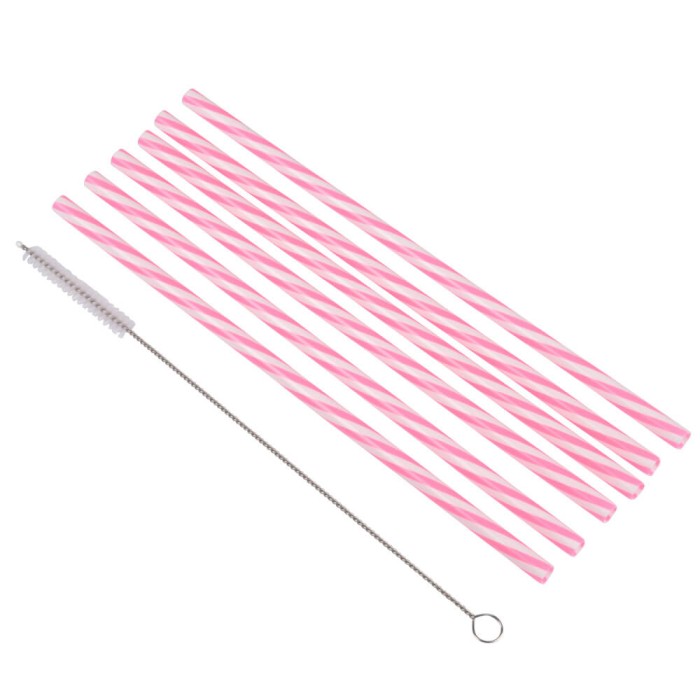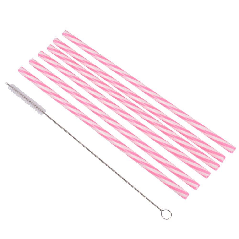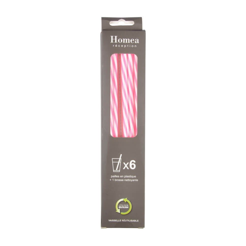 Juego de 6 pajitas reutilizables de color rosa y blanco fabricadas en plástico resistente, perfectas para beber y degustar todo tipo de bebidas, cocteles, refrescos, batidos, etc.