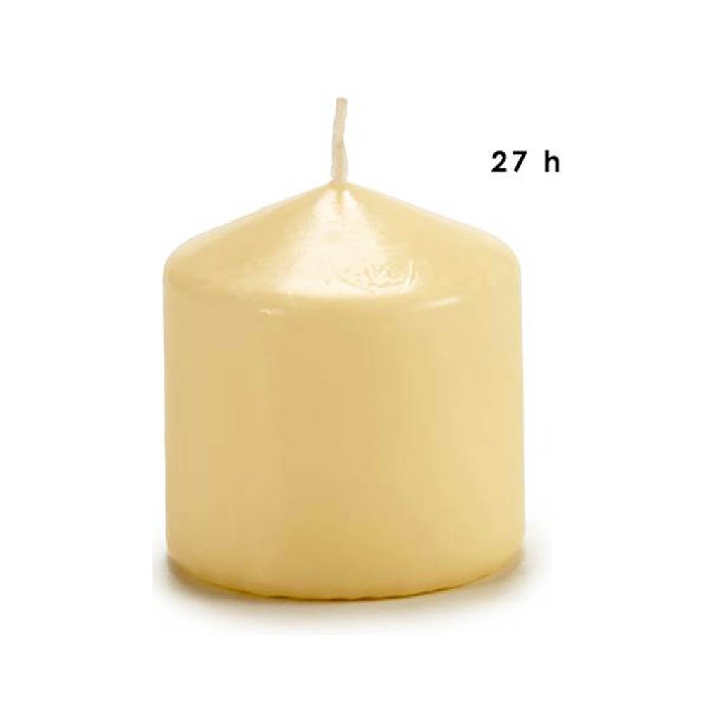 Vela cilíndrica de 8 cm realizada en cera de color crema. Esta vela es ideal para colocar en jarrones de cristal o en todo tipo de centros de mesa, es un complemento perfecto para la decoración del hogar.