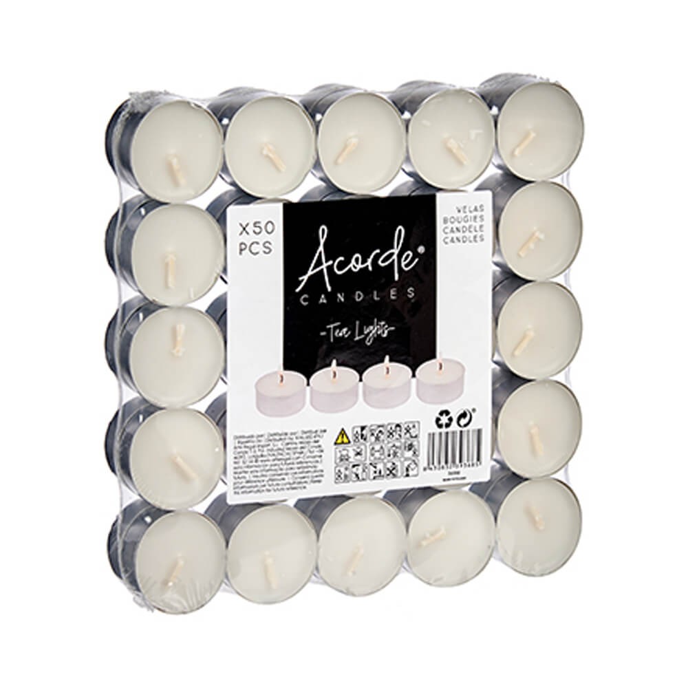 Set de 50 velas tea light blancas sin perfume.