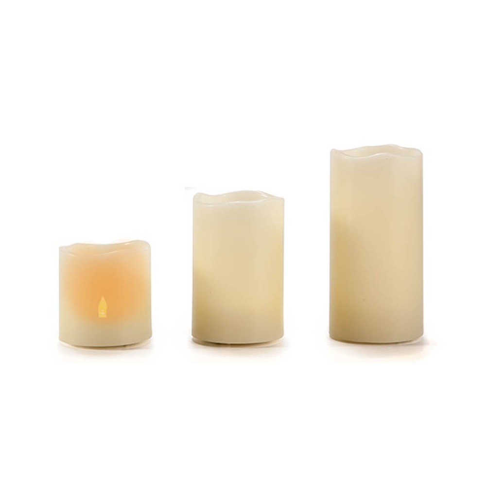 Set de 3 velas led en diversos tamaños con luz cálida, perfectas para iluminar y decorar creando una atmósfera acogedora. Con este set de velas puedes armar un maravilloso conjunto decorativo para decorar salones y recibidores o colocarlas por separado en diferentes rincones del hogar.