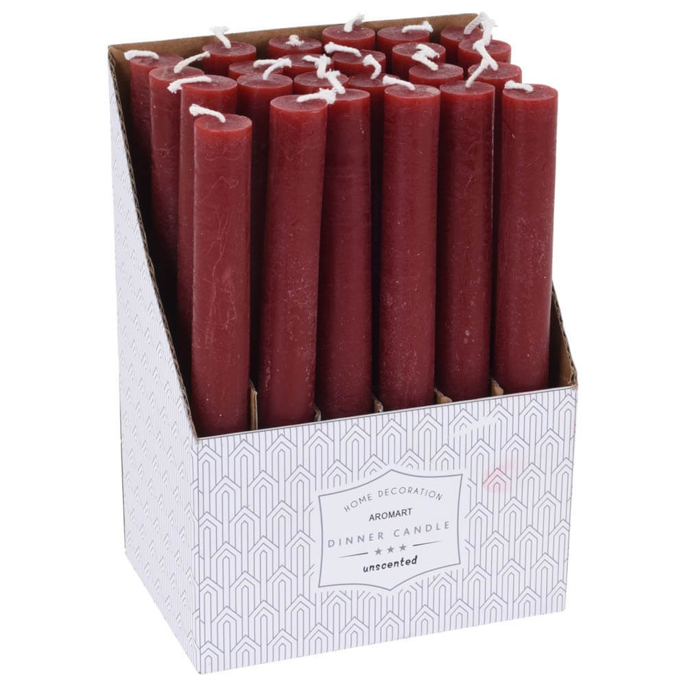 Vela de candelabro fabricada en cera de alta calidad de color rojo con acabado rústico, perfecta para crear puntos de luz e iluminar de forma tenue diferentes espacios.