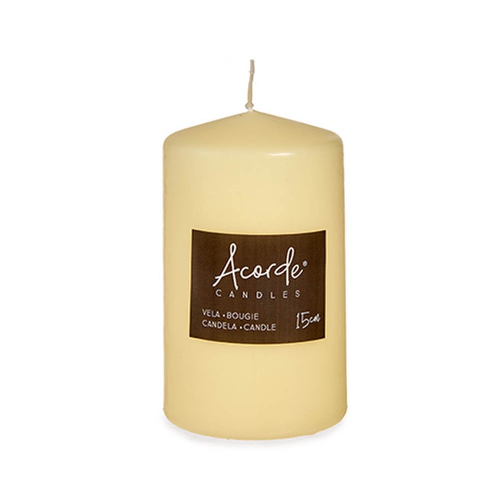 Vela decorativa fabricada en cera de alta calidad de color crema con una duración aproximada de 88 horas de combustión, ideal como complemento de decoración para colocar en centros de mesa y jarrones.