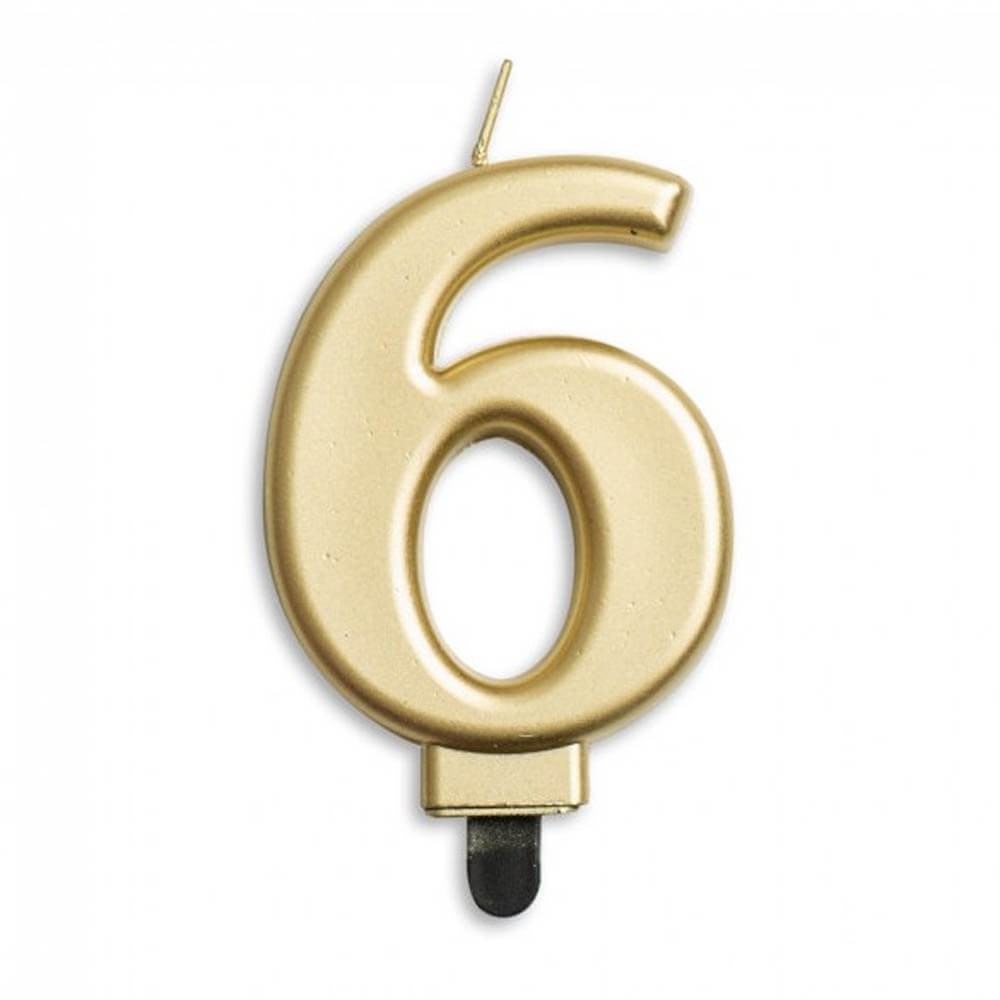 Vela cumpleaños en color Oro con forma de número "6".