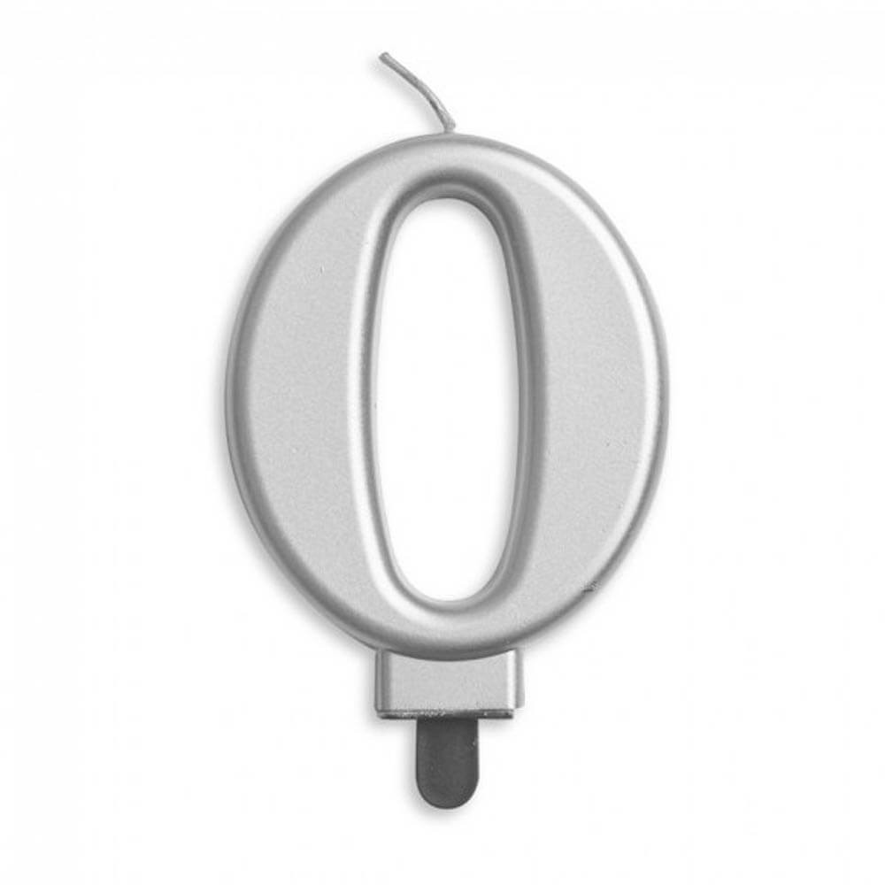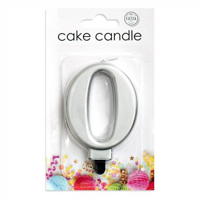 Vela de cumpleaños en color Plata con forma de número "0", lleva una práctica lengua de plástico en la parte inferior para garantizar una sujeción perfecta a la tarta.