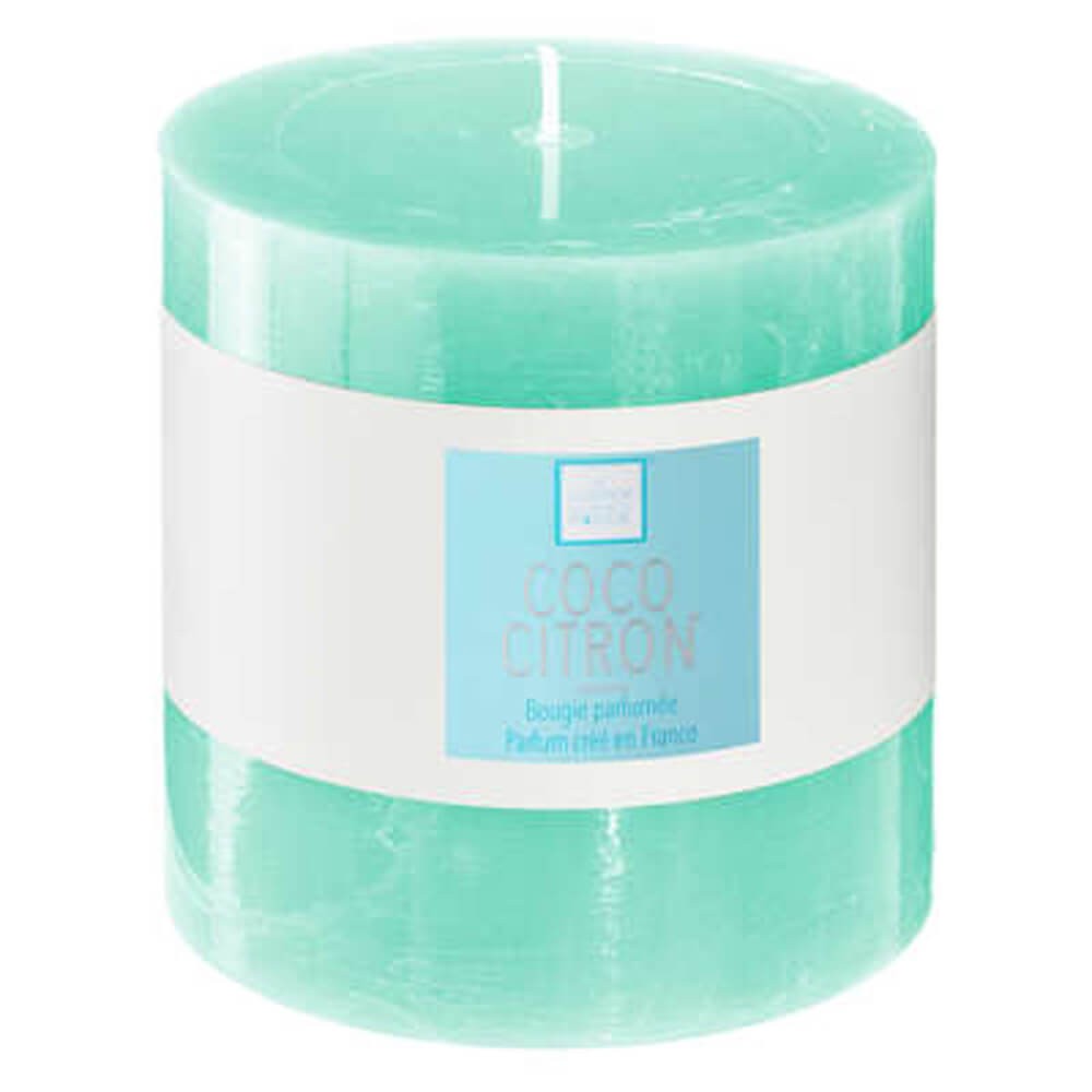 Vela de parafina de color azul con aroma a Coco limón, fragancia exótica y afrutada. Tiempo de combustión: 48 h.