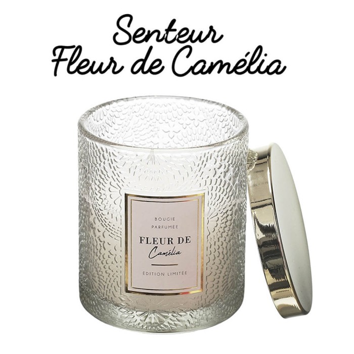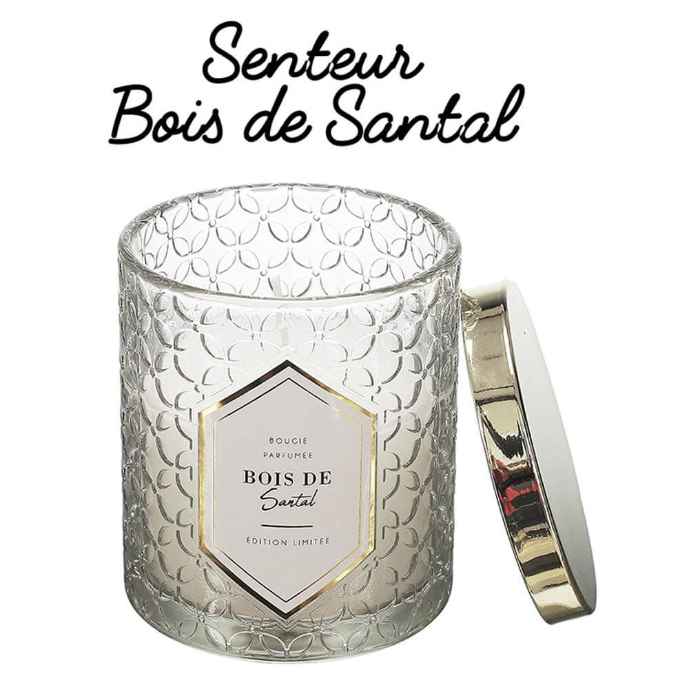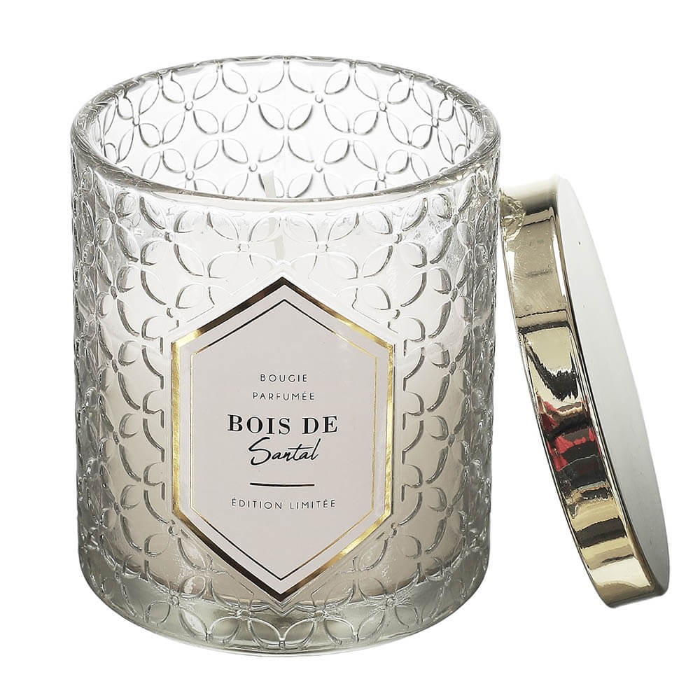 Vela aromática de cera parafina con mecha de algodón envasada en frasco de cristal decorado con relieves y tapa de metal. Un accesorio ideal para perfumar y decorar las estancias creando un ambiente íntimo y acogedor.
