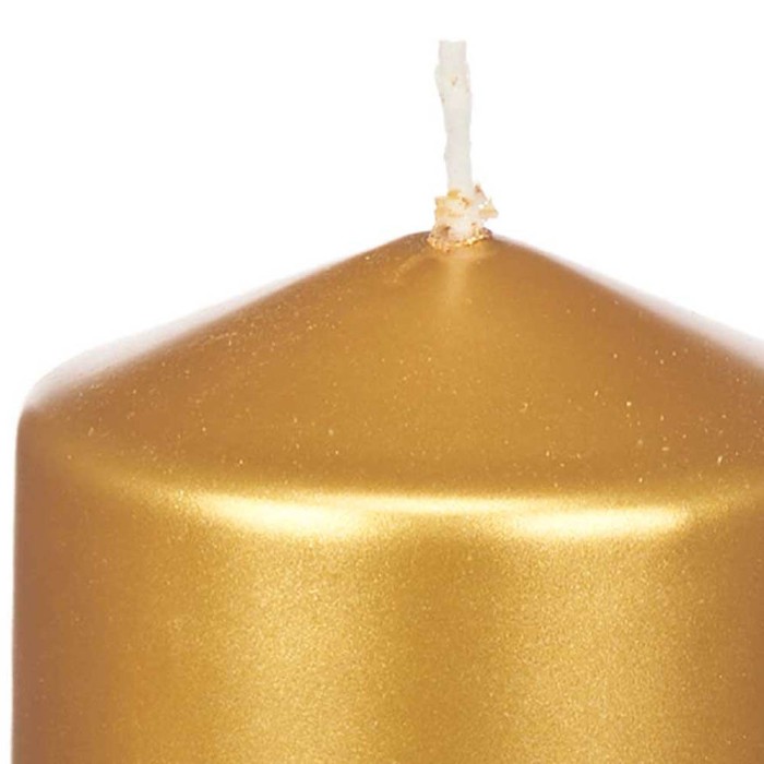 Vela dorada de 7 cm de diámetro y 10 cm de altura, perfecta para decorar y dar un toque cálido y acogedor a tu hogar en ocasiones especiales. Duración en combustión de 41 horas.