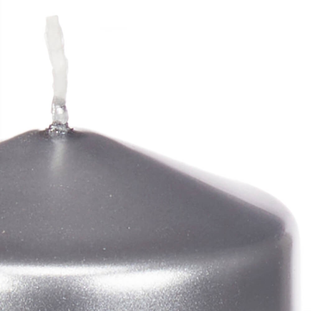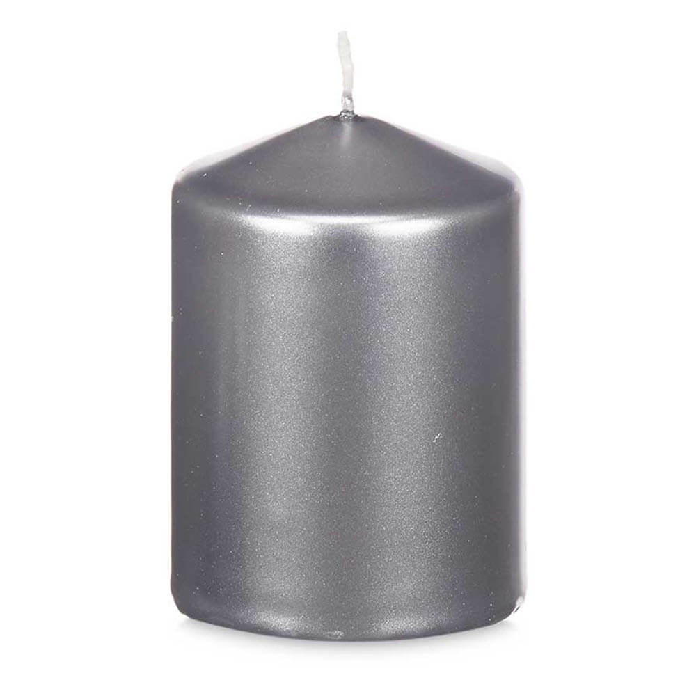 Vela plateada de 7 cm de diámetro y 10 cm de altura, perfecta para decorar y dar un toque cálido y acogedor a tu hogar en ocasiones especiales. Duración en combustión de 41 horas.