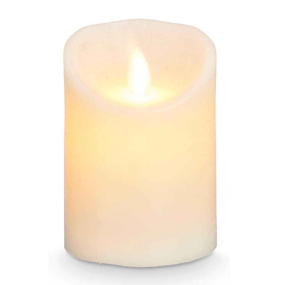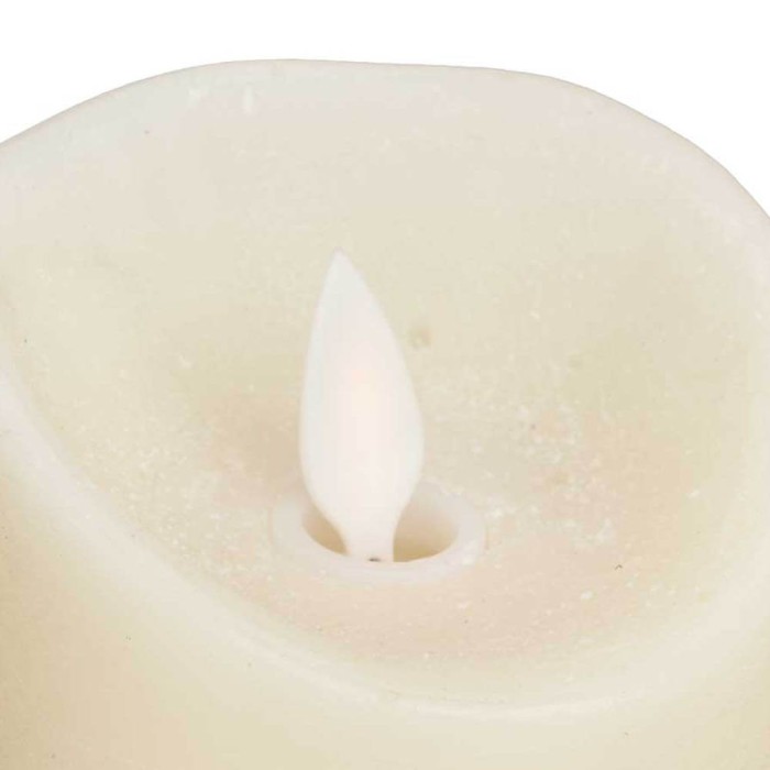 Vela LED de color crema con efecto llama, 7,5x10 cm. Alternativa segura y práctica a las velas tradicionales. Funciona con 2 pilas AA (no incluidas). Proporciona luz cálida sin riesgo de llamas, quemaduras o manchas de cera.